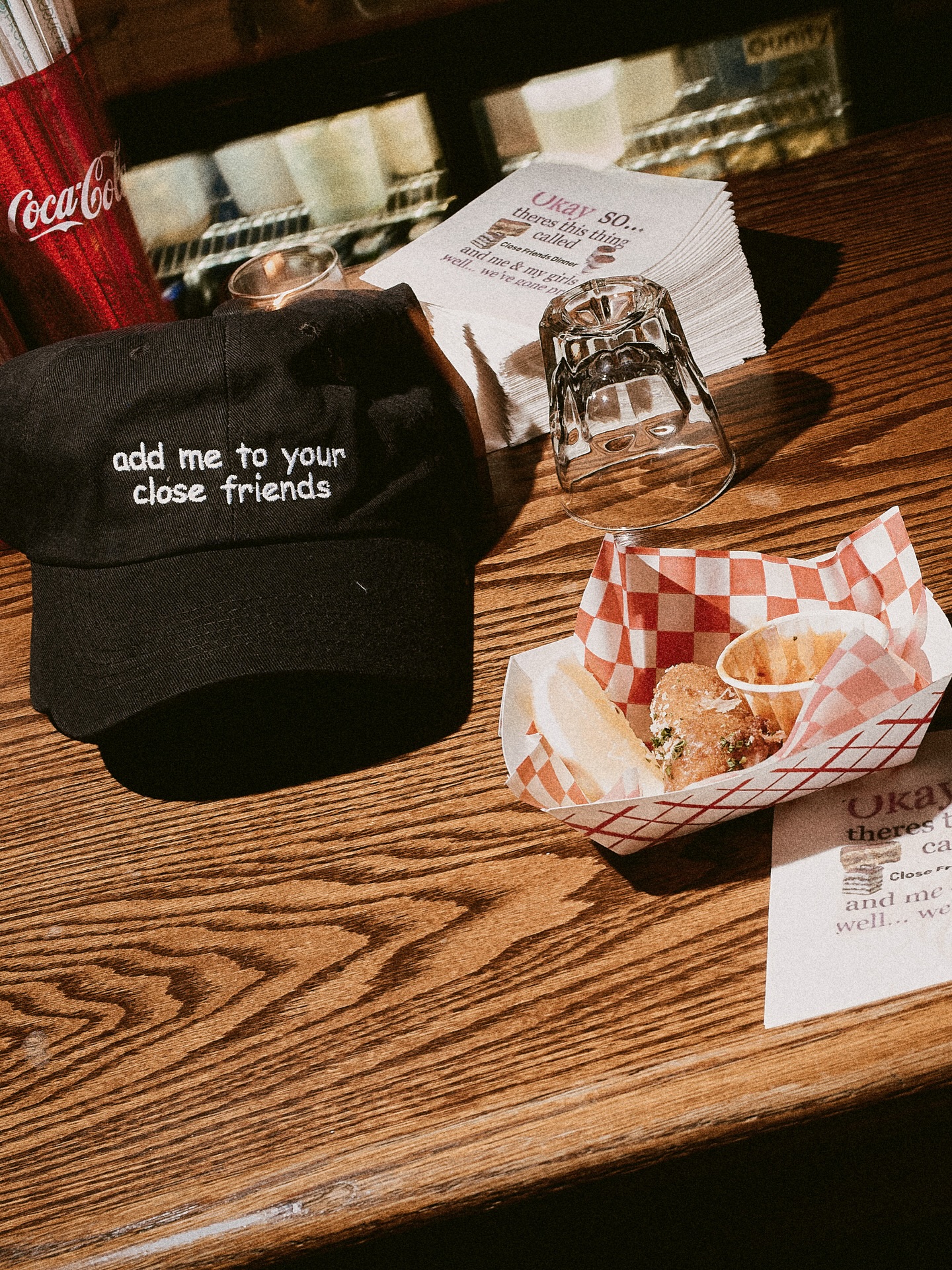 Instagram tapped up to create caps for their exclusive Close Friends Only Dinner at Bernie's in Williamsburg.
